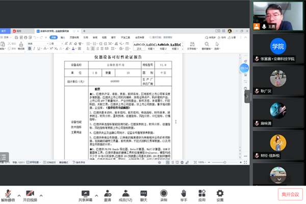 学习讨论中,王勇组织全体教师围绕弥补经管学科大数据库短板、支持大数据专业群建设等内容,开展金融数据端仪器采购论证。王勇首先结合财经学院学科建设背景详细论证了金融数据端的性能、指标、主要用途以及可能承担的教学、科研以及服务项目等,预估了数据端的使用效率、教学、科研及经济效益。随后,专业教师分别从教师日常教学、科学研究,学生参加学科竞赛、撰写毕业论文等方面提出对金融数据端的需求。最后,耿广汉作总结发言,他肯定了新时代金融数据端建设对国家一流专业建设、会计专硕申报、学院各专业集成化发展的重要作用,肯定了金融工程系在发挥“以赛促改”特色优势,培养满足当今社会需求的、具有数据分析及创新创业能力的、既掌握技术又懂得管理的跨专业的应用型人才所作出的努力以及取得的成效,并希望金融数据终端在实际应用中能够切实嵌入到全校多个大数据专业建设,惠及全校师生全面发展。