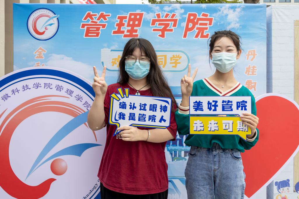 在管理学院入学报到信息核验点,竖立着一块色彩斑斓的管理学院留影背景墙——“我与院徽合张影”。学院特别为每一位报到的新生拍下开学的第一张照片。随着一声“咔嚓”轻响,美丽的安科校园,未来将活跃着更多的年轻身影,他们笑得灿烂,朝气蓬勃。