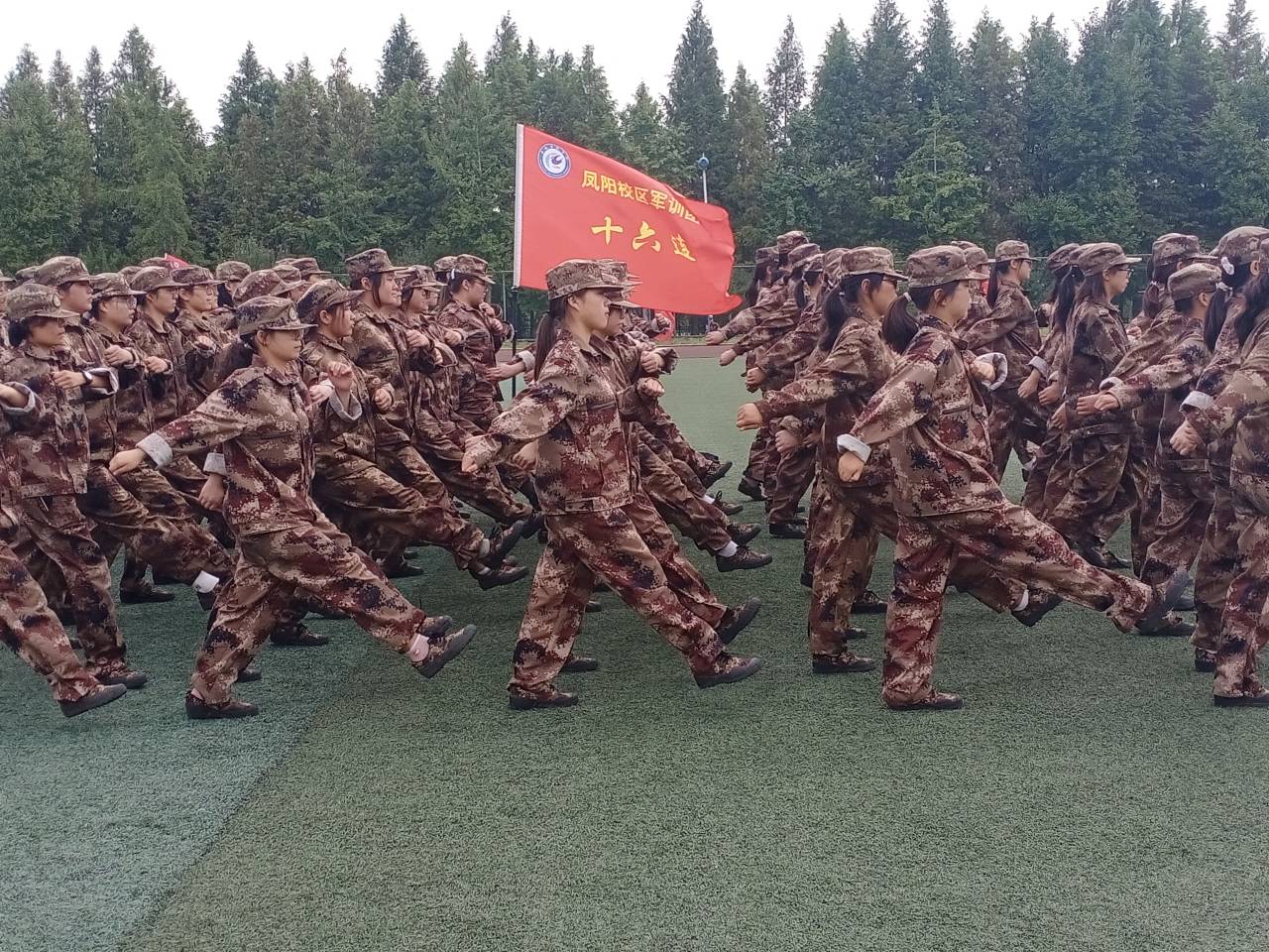 9月27日,新生军训已进入到第七天,操场上,一群身着迷彩服的人文学子正站着整齐的军姿,踏着有力的正步,在操场上尽情地挥洒着他们的青春。微风下、操场上、红旗边、方阵间,青春风采完美彰显。伴随着一声声闪亮的“稍息、立正”,站军姿、踢正步、走方阵等一系列训练活动按计划不断重复进行。每一个动作,教官都亲自示范与指导,从立正到稍息、从摆臂到踢腿、从握拳到绷腿,都要经过教官严格把关,力争让每一位人文学子都养成扎实的军人素质。反复的训练对于新生们来说,不仅是汗水的挥洒,更是意志的磨砺。在军训的过程中,他们收获的不仅仅是身强体健,更是一种团结精神、一种氛围、一种环境、一种无形的力量。“宝剑锋从磨砺出,梅花香自苦寒来”“千里始足下,高山起微尘”,军训虽然辛苦,但这些都将是一个成大事者必备的条件,是整个大学生活中乃至一生中无比宝贵的财富。