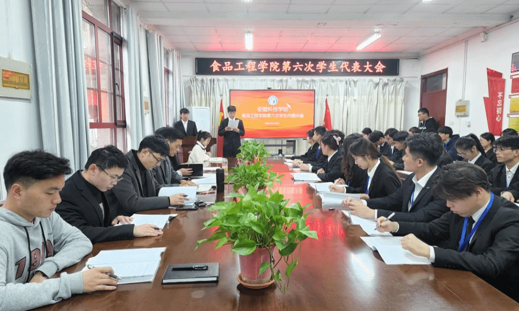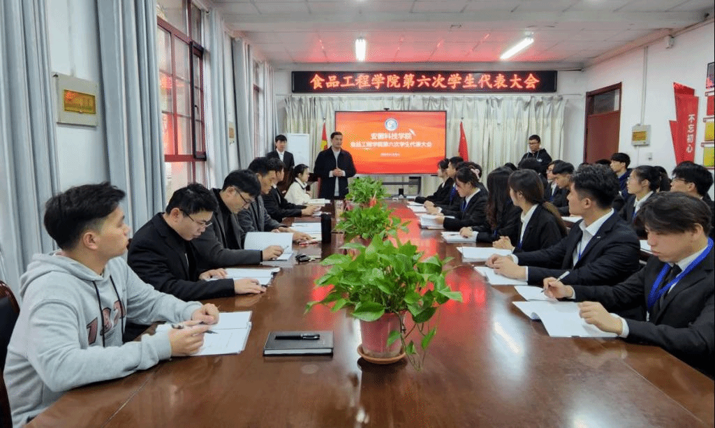 为全面学习贯彻党的二十大精神,进一步引导我院青年学子坚定理想信念,勇担时代使命,争做走在时代前列的奋进者、开拓者和奉献者,11月18日,食品工程学院第六次全体学生代表大会在东办公楼会议室顺利召开。学院党委书记付光玺,党委副书记、纪委书记王广良,团委书记赵传磊出席并指导大会,全体辅导员、第五届学生会主席团成员宋继博、戚加伟、王兴及全体学生代表参会。大会由宋继博主持。