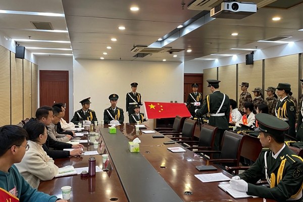 黄立义对校国旗护卫队所做的大量工作与取得的成绩给予充分肯定,对全体国旗护卫队队员表示感谢。他指出,国旗护卫队是党委学工部、学生处直接领导下、肩负着特殊责任和使命的学生社团,以护卫国旗为首要任务,通过宣讲国旗、升降国旗等形式强化思想引领、价值引领,发扬爱国主义精神,发挥朋辈示范作用,传递正能量。他结合工作实际对国旗护卫队提出六点希望:一是要加强学习,不仅要做好学业学习,而且要强化政治理论学习、学习党的二十大精神、国旗法学习,做到政治上先学、主动学习,自觉强化理论武装,不断提升工作水平和业务能力。二是要刻苦训练,保持吃苦耐劳的精神品质,保证校国旗护卫队优良传统有序传承下去。三是要塑造良好形象,作为一名国旗护卫队队员无论是从场上到场下、从工作到生活,都要严于律己,把控好每一个细节,切实维护好国旗护卫队的良好形象。四是要加强自身建设,通过强化组织建设、思想建设、作风建设、团队建设等,有效提升综合素质和水平。五是要守正创新,在继承发扬国旗护卫队良好传统的基础上,坚持与时俱进、精益求精,不断改进创新。六是要严格纪律,绷紧纪律之弦,认真遵守国旗护卫队章程和有关工作纪律要求,严格要求自己。他希望国旗护卫队在党委学工部的正确领导和指导老师的精心指导下,在全体队员的共同努力下,国旗护卫队的建设越来越规范,越来越完善,在学校事业发展中发出光和热,作出新的更大贡献。