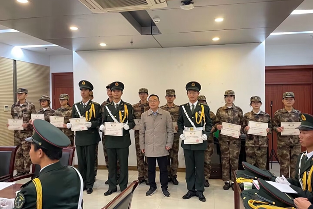 会上,陈君君和胡文靖分别颁发了退役证书和新队员聘书并合影留念,石志成宣读了老队员退役以及聘任校国旗护卫队第27届新成员的通知。第27届校国旗护卫队进行了入队宣誓仪式,即将退役的老队员代表为新入队队员代表授予军装,校国旗护卫队退役队员代表发表退役感言、新入队队员代表发表入队感言、新一届国旗护卫队骨干代表作了履职表态发言。