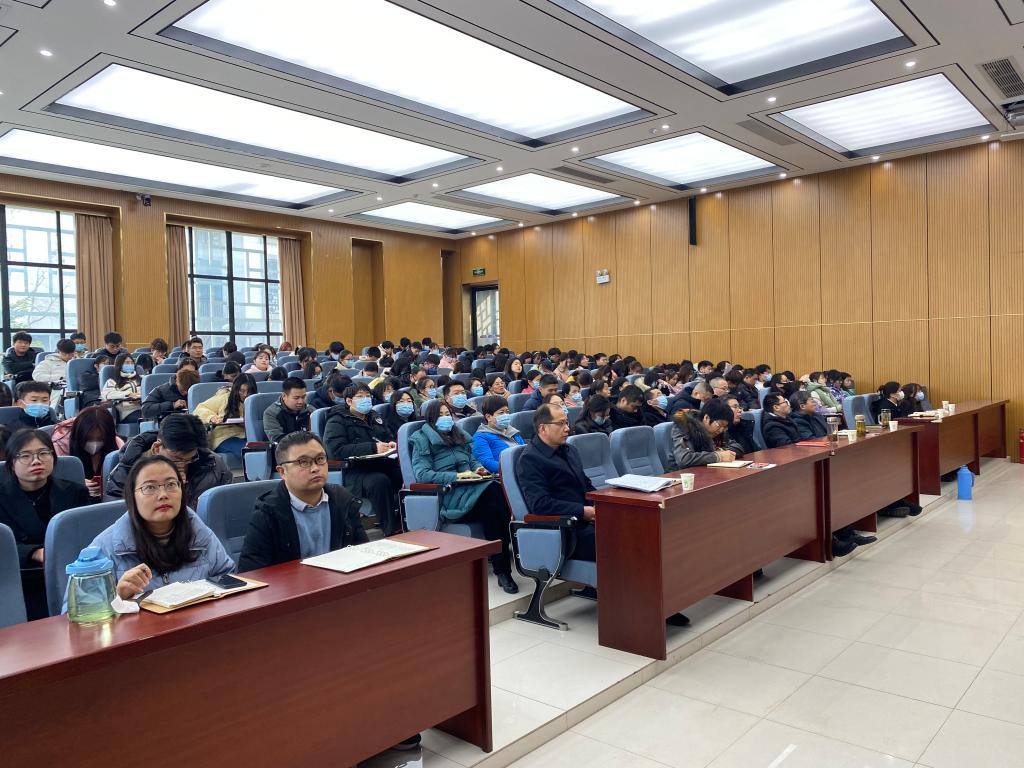 王有炜教授在报告指出,党的二十大报告蕴含一系列新的重要思想、重要观点、重大战略、重大举措,是党团结带领全国各族人民夺取中国特色社会主义新胜利的政治宣言和行动纲领,是马克思主义的纲领性文献。我们要深刻领悟“两个确立”的决定性意义,增强“四个意识”、坚定“四个自信”、做到“两个维护”。报告强调,学习贯彻党的二十大精神,要切实做到整体把握、突出重点、联系实际,要牢牢抓住中国式现代化这一承上启下的枢纽,深入推进党和国家事业发展大政方针和各项战略部署,切实把党的二十大精神转化为指导实践、推动工作的强大动力。