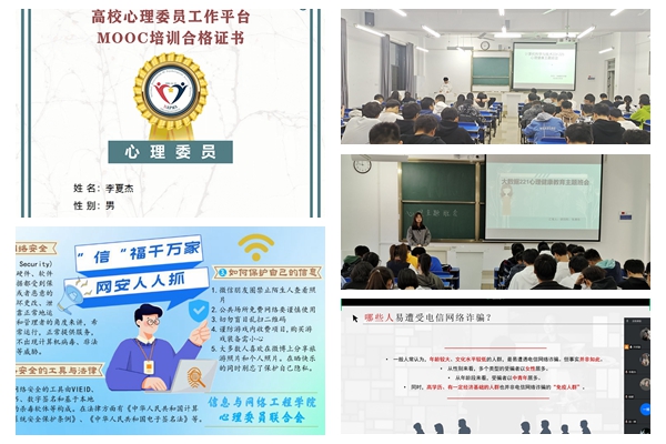 互联网作为一种新型的多元化基础交流工具,内容繁多,利弊共存,大学生既能在互联网社会中获得极大帮助,也容易受到形形色色不良内容的影响,随着互联网发展愈发成熟,大学生网络心理问题也日益凸显。学院结合专业特点举办“信 ‘福’千万家,网安人人抓”一院一主题活动,主要面向全体学生,并设有展板、签名板。本次活动旨在宣传过度依赖网络对大学生心理健康所造成的危害,帮助大学生树立正确的网络安全观,引导大学生正确、合理使用网络,摆脱网络过度依赖心理。