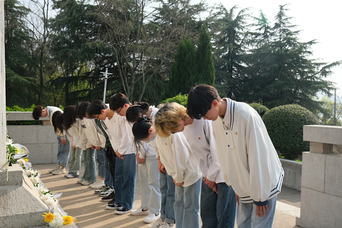 随后,同学们踏着沉重的步伐,逐一瞻仰烈士纪念碑,向烈士们敬献鲜花,表达对革命先烈的崇高敬意和深切缅怀。
