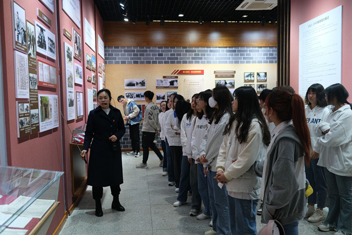 随后,同学们进入革命烈士事迹陈列馆,在讲解员的解说下,深入了解淮河儿女从辛亥革命到第一次大革命、土地革命、抗日战争、解放战争等各个时期浴血奋战史。同学们驻足凝思,深情缅怀,心灵深受震撼。