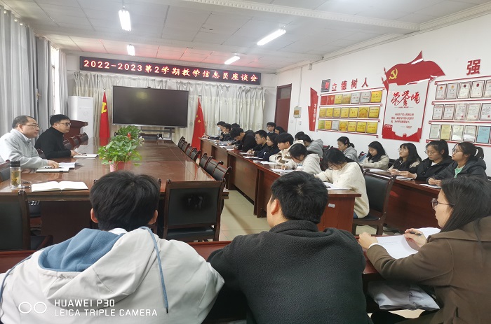会上,各班教学信息员围绕学风、上课纪律、课堂表现、教师教学、教学环境等积极发言提问,分享了一些老师好的教育教学方法。舒英杰和吴孝国一一解答。