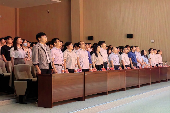 在庄严的国歌声中,毕业典礼正式开始。骆海邦强调,青年要不负青春、不负时代,自觉践行听党话、跟党走的青春誓言。他提出三点意见与毕业生共勉:一是心怀梦想,勇于担当,以民族复兴为己任、以国家呼唤为己任,做新时代的主人翁和建设者;二是踔厉奋发,勇毅前行,敢于应对重大挑战,善于克服重大阻力,在社会大熔炉中经受锻炼、增长才干,在团结奋斗中磨炼意志、建功立业;三是砥砺品行,热爱生活,始终充满爱心、懂得感恩,使身处环境更加文明,社会更加和谐,生活更加美好。