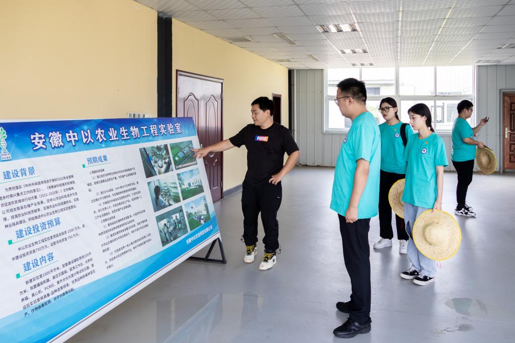怀远石榴是一个宝贵的地域品牌,而种子是农业的‘芯片’,新品种研发和种苗生产环节则是关键。在怀远中以农业科技有限公司园区,实践团同学们认真听取企业负责人关于企业介绍,全面了解园区整体产业规划和农业科技发展等情况,并随企业技术人员走进石榴种苗温室大棚和种植基地,认真观摩石榴种苗脱毒组培技术现场演示,同时重点就“科技+产业”双向发力,深挖怀远特色产业资源,以设施化、智能化和数字化为科技支撑等发展现代农业产业等方面的思考与企业负责人等进行了现场探讨。