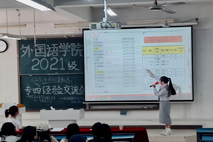 新竹高于旧竹枝,全凭老干为扶持。希望同学们能通过本次英语专业四级考试经验交流会找到适合自己的学习方法,在即将到来的英语专业四级考试中取得优异成绩!(作者:孙慧琳 应安琪 摄影:陈润莲)