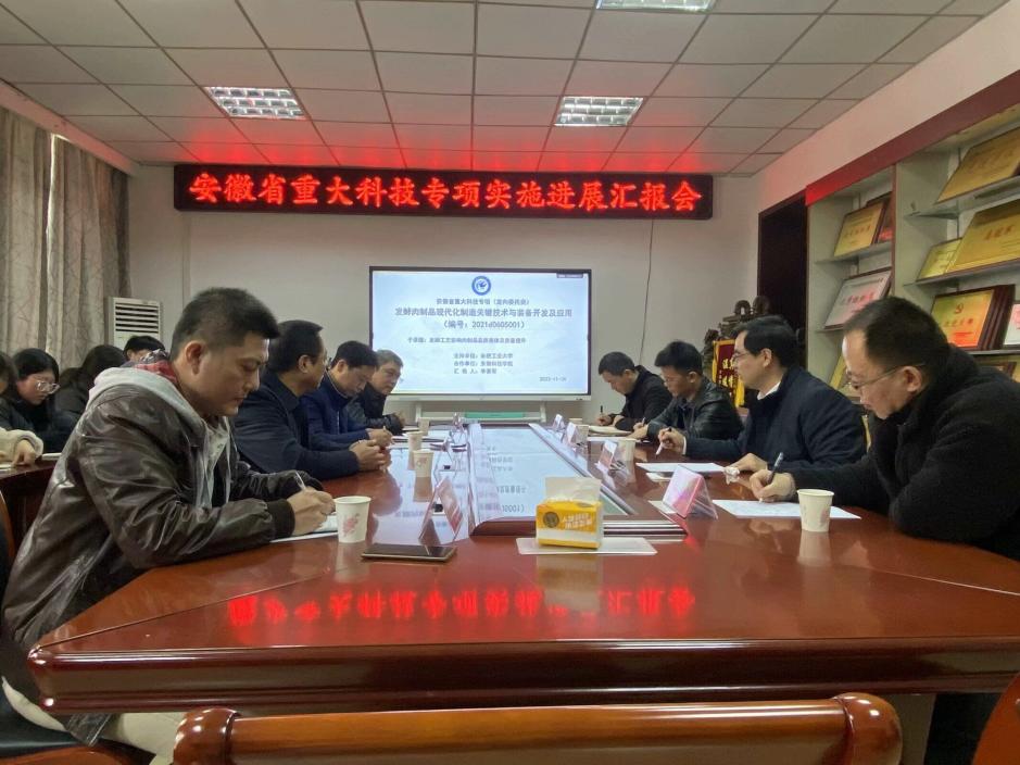 11月30日上午,合肥工业大学食品与生物工程学院院长徐宝才研究员、蔡克周教授、李述刚教授、吴文达教授到我校食品工程学院开展安徽省重大科技专项(定向委托类)——发酵肉制品现代化制造关键技术与装备开发及应用项目进展汇报及推进交流活动。食品工程学院党政领导、有关教师及部分畜产方向硕士研究生等参加活动。会议由学院副院长郑海波主持。