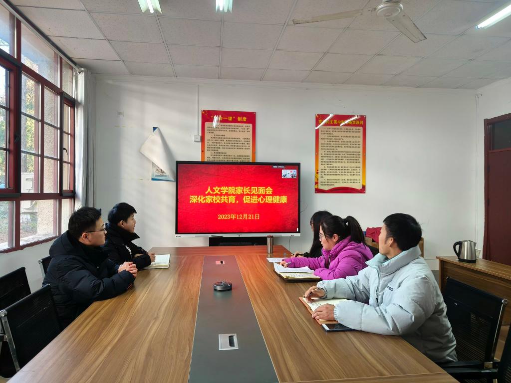 为深入贯彻落实《高等学校学生心理健康教育指导纲要》,进一步加强大学生心理健康教育工作,推进家校协调共育,守护好大学生心理健康,有效防范校园心理危机事件的发生,12月21日,人文学院召开线上“深化家校共育促进学生心理健康”家长会,学院党政领导、全体专职辅导员和近百位学生家长参会。