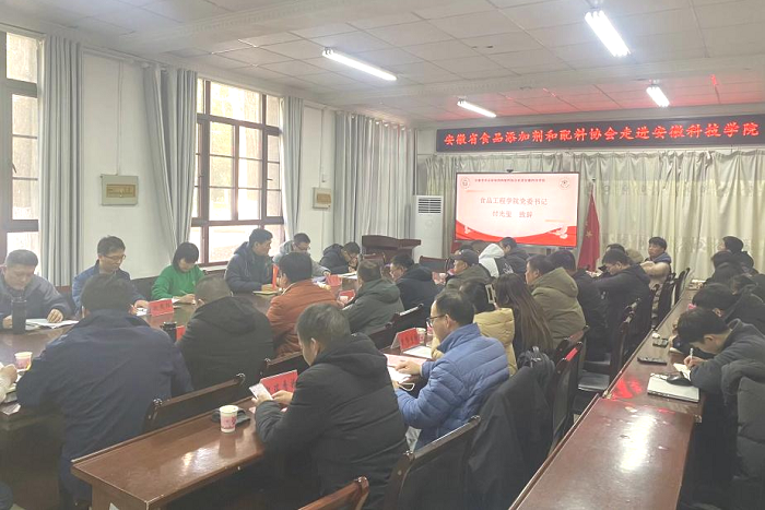 12月22日,食品工程学院食品营养与安全系教工党支部在凤阳校区举办了“安徽省食品添加剂和配料协会走进WG官方网站”活动。食品工程学院党委书记付光玺,院长杜传来应邀出席。会议由协会秘书长杨文明主持。