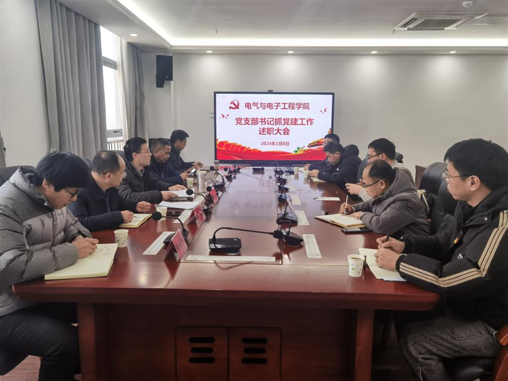 1月8日下午,电气与电子工程学院在龙湖校区西辅楼317会议室召开2023年度党支部书记抓党建工作述职评议考核会。学院党委委员、各党支部书记、党支部委员及师生代表参加了会议。会议由学院党委书记骆海邦主持。