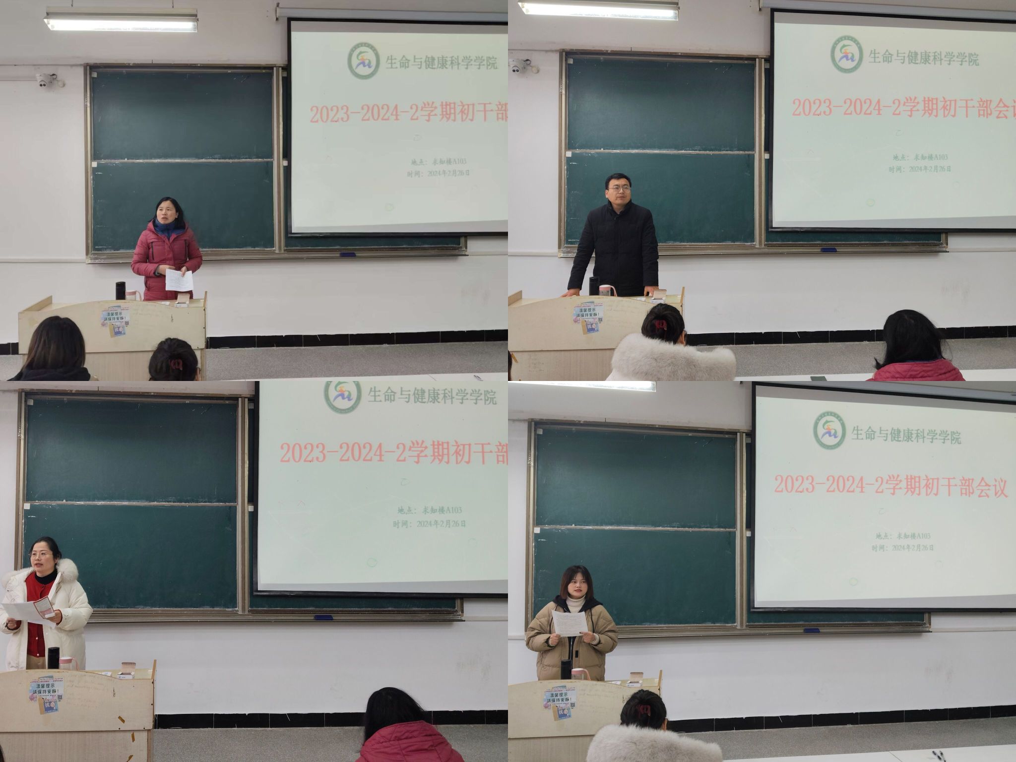 为切实推进新学期学生工作有序开展,强化学生干部责任意识,2月26日中午,生命与健康科学学院在求知楼A103教室召开期初学生干部工作会议。学院专职辅导员,学生团体主要负责人及各班级主要学生干部参加会议。会议由正科级辅导员刘国祥主持。