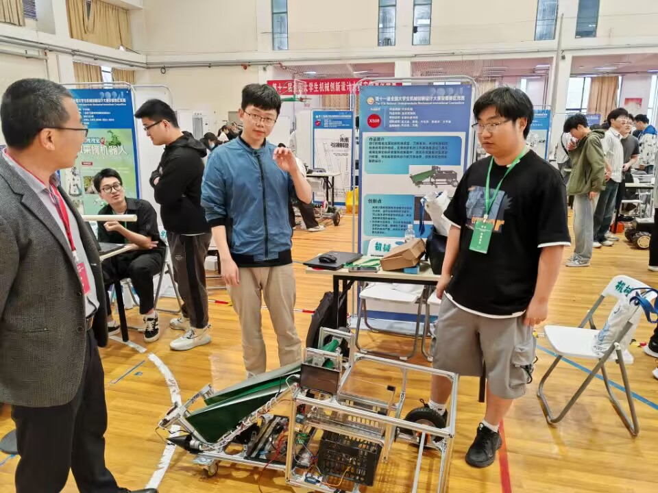 5月11至12日,第十一届全国大学生机械创新设计大赛安徽赛区竞赛在安徽理工大学举办,吸引了省内合肥工业大学、安徽理工大学、安徽农业大学、安徽工业大学等26所高校的202件作品参赛。我校机械工程学院共派出6支队伍参赛,其中由乔印虎、方梅老师指导的“智能韭菜收割机”获得一等奖,并推荐参加国赛(全省仅推荐5项),是我校历次参加该项赛事的最佳成绩;周文翰、魏广智老师指导的“‘螃蟹’茄子采摘机器人”获三等奖,因制作工艺水平以及信息化集成程度高,结构新颖,吸引众多参赛师生围观。