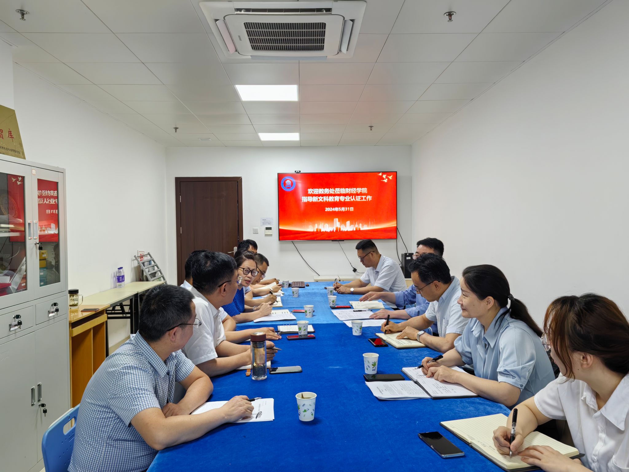 为推动“新文科”教育改革,提高“新文科”人才培养质量,5月31日上午,校教务处处长赵伟峰,副处长周金星,外国语学院副院长洪民,教务处教学评估科科长张杰等一行深入财经学院开展“新文科”专业认证调研工作,学院党政领导班子、各专业负责人、实验室主任、教学秘书等参加了调研座谈会。会议由财经学院院长郝世绵主持。