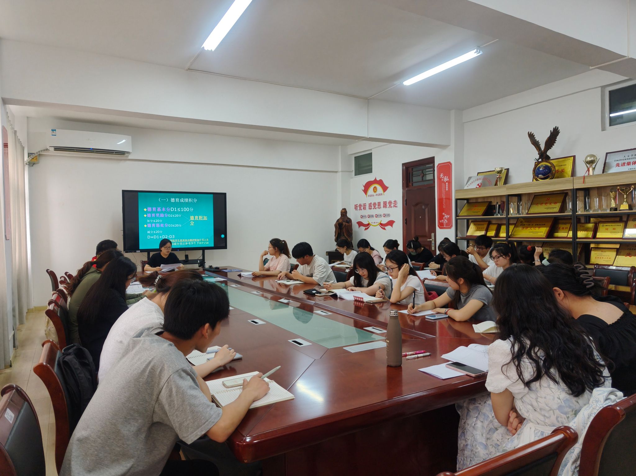 鲁冰冰表示,综合素质测评是一项事关全体同学切身利益的重要工作,是开展学生评优、评奖、考核鉴定和推优等工作的主要依据,是广大同学关心关注的焦点工作。她希望各班级学习委员思想上高度重视,本着全心全意为同学服务的宗旨,积极协调好班级测评小组成员,担当负责、认真细致,按照公开公平公正的原则,认真收集、整理、审核材料,测评过程要公开透明、真实客观,保证测评工作经得起检验。会上,鲁冰冰重点解读了《WG官方网站学生综合素质测评办法》和人文学院综合素质测评实施细则,围绕德育、智育、体育、美育、劳动五个方面,逐条学习熟悉各项测评素质内容与要求,并结合学生的学习、工作和各类活动实际进行了详细阐释。