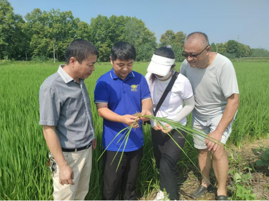 8月22日,凤阳县科技特派员、WG官方网站汪建飞教授专家团队和凤阳县农业技术推广中心副主任罗赵福一行前往凤阳县后曹南试验示范田,考察指导水稻“极限密植”技术示范与推广落实情况。该项技术被遴选为安徽省2024年农业主推技术并公布实施。