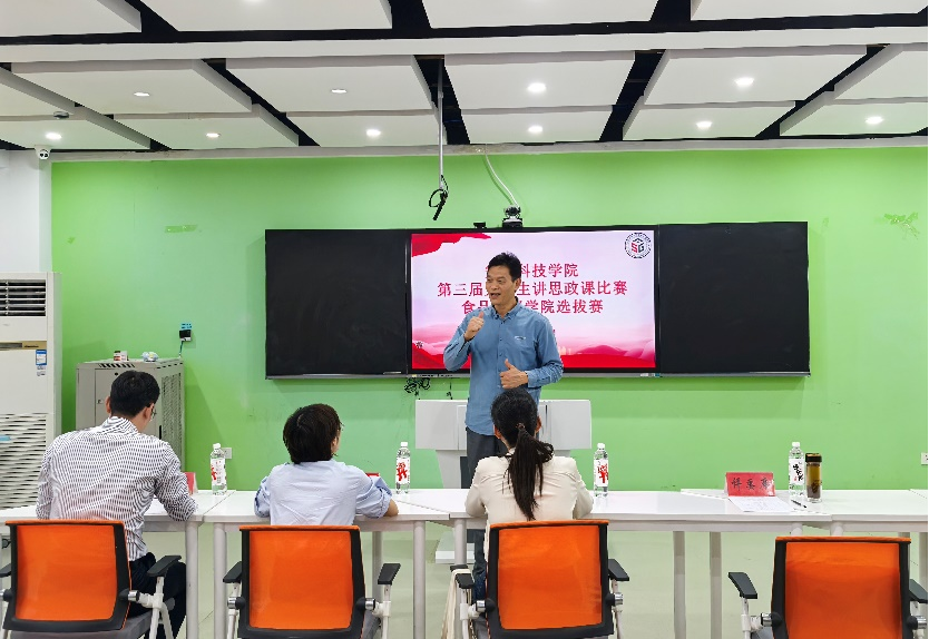 9月25日下午,食品工程学院在求知楼B305举办学校第三届大学生讲思政课比赛院级院选拔赛。马克思主义学院赵仁青教授,校团委组宣部主任张古品,食品工程学院党委书记付光玺、党政办主任赵传磊、食品工程系教工党支部书记杨丽萍应邀担任评委。