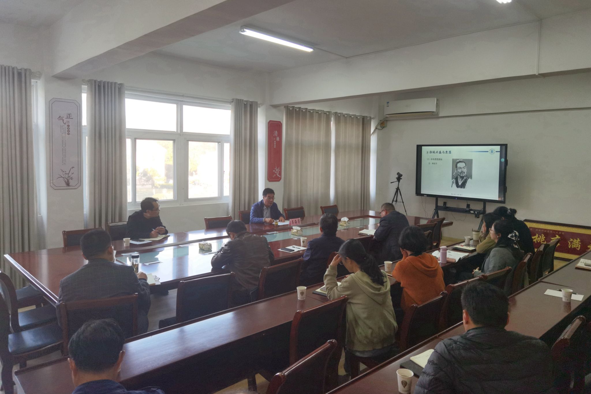 吴海涛围绕“淮河文化与明文化融合研究”主题,从淮河文化的历史渊源、发展特点以及资源开发与利用方面入手,深入分析了淮河文化与明文化在历史上的交融与互动。他指出,淮河文化与明文化在多个方面存在着密切的联系和互补性,两者的融合不仅促进了地域文化的繁荣发展,也对中华文明的演进产生了深远的影响。报告内容丰富,观点新颖,引发与会人员深入讨论和思考。