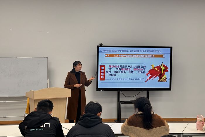 王瑞晨以《聚焦中国式现代化》为主题,围绕中国式现代化的三个核心深度展开深入探讨:其一,中国式现代化凝聚着中国共产党与中国人民长期以来在实践中探索的智慧结晶与伟大成果;其二,须深刻领悟中国式现代化所蕴含的独特中国特色,这是区别于其他现代化模式的关键所在;其三,务必紧紧抓住团结奋斗这一时代脉搏,由此踏上全面建设社会主义现代化国家的崭新征程。最后,她寄语思政委员:同学们要秉持独立自主之精神、坚守脚踏实地之作风、筑牢坚定理想信念之根基、胸怀家国天下之抱负,为中华民族伟大复兴的宏伟蓝图注入青春的蓬勃力量,书写属于这一代青年的绚丽华章。