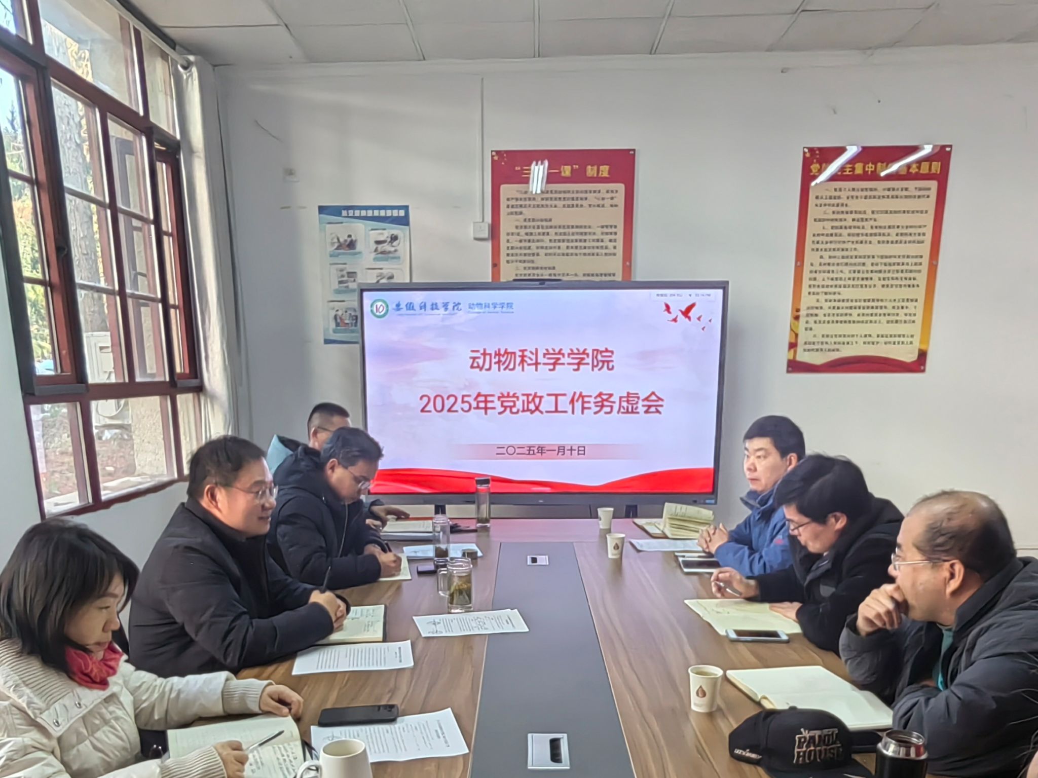 为统一思想,凝聚共识,科学谋划学院2025年党政重点工作,1月10日,动物科学学院在学院会议室召开2025年党政工作务虚会,学院党委书记甘宗平主持会议,学院党政领导和各系室、教工党支部、分工会等部门主要负责人参加会议。