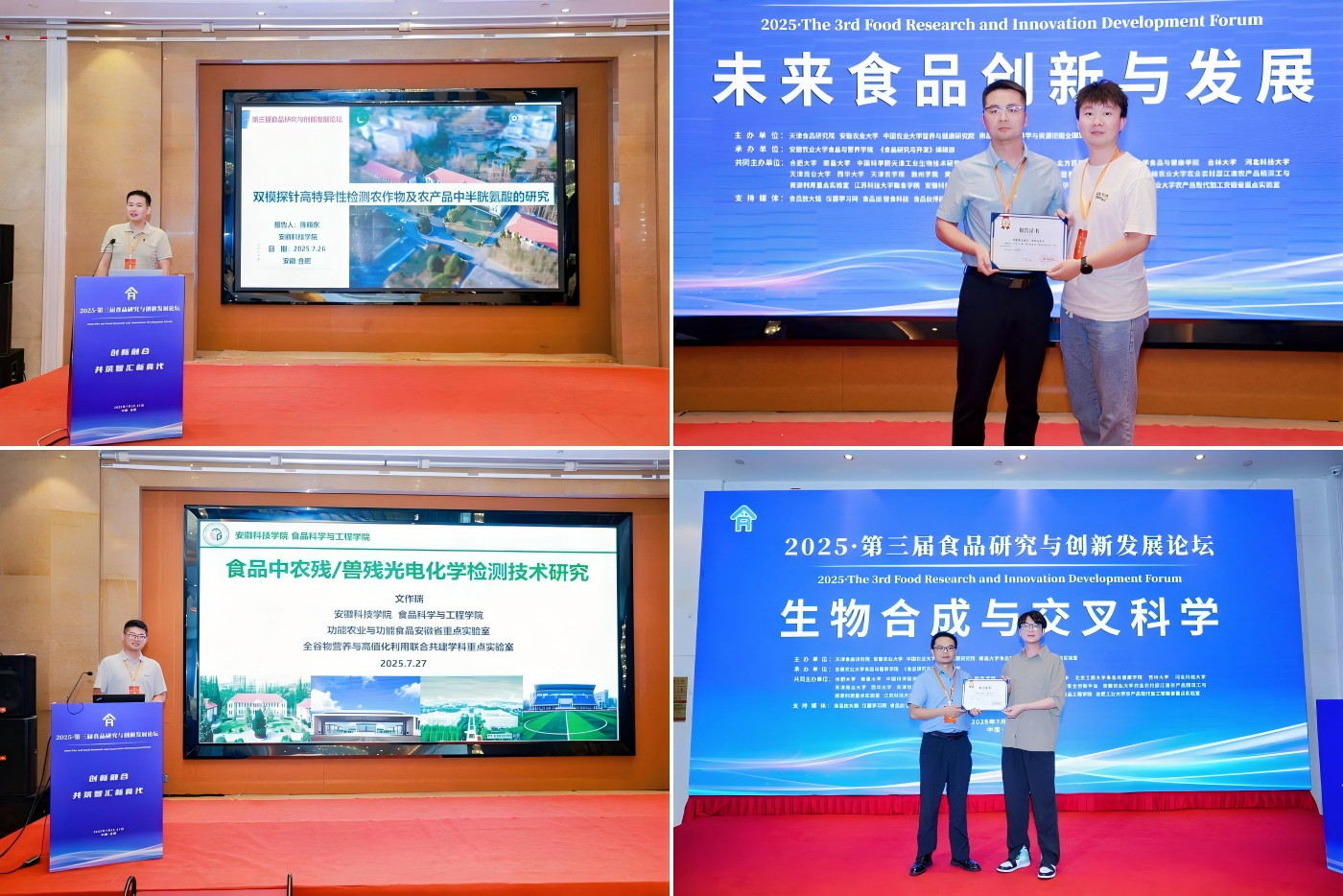 作为共同主办方,WG官方网站食品科学与工程学院深度参与本次论坛,杜传来与翟立公分别担任大会学术委员和执行委员,翟立公主持了食品微生物与肠道健康分论坛,四位青年博士分别在四个分论坛上做了学术报告。陈晓东博士以“双模探针高特异性检测农作物及农产品中半胱氨酸的研究”为题,介绍了其高特异性方法检测半胱氨酸的研究成果;黄明远博士以“表面电荷效应驱动多糖-蛋白互作改善水溶肌原纤维蛋白功能特性”为题,重点揭示了表面电荷效应驱动多糖与蛋白互作机制;文作瑞博士围绕“食品中农残/兽残光电化学检测技术研究”,重点阐述了其通过电化学技术检测农残兽残的关键突破;曾剑华博士以“牛乳αs1酪蛋白构象抗原表位定位及其高效靶向破坏研究”为题,重点介绍了牛乳αs1酪蛋白抗原靶向消减的技术突破及相关研究成果。