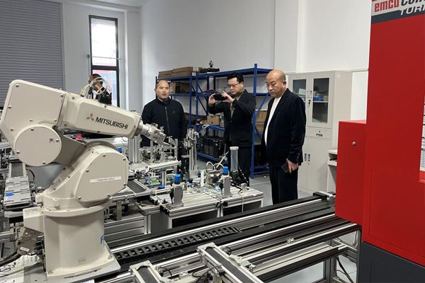 会议开始前,乔印虎引导企业人员先后参观了智能制造学院实验室及实训中心。企业人员详细了解了学校在智能制造领域的科研设施、技术储备和人才培养成果,对学校的科研实力和实践教学水平给予高度评价。