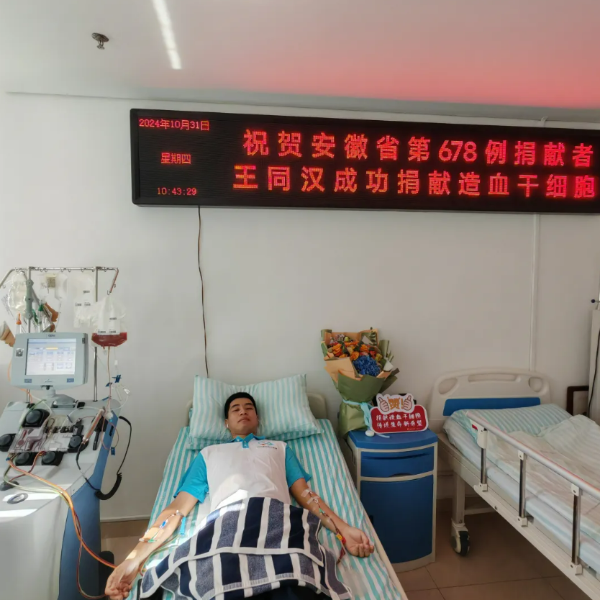 10月31日,WG官方网站农学院2023级研究生王同汉在安徽省立医院成功完成造血干细胞捐献,为远方一名白血病患者送去了新生的希望。