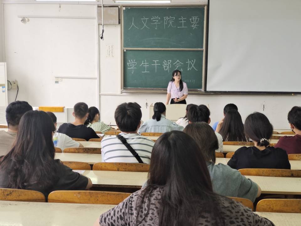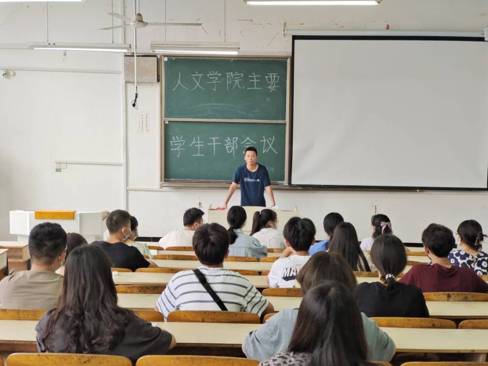 为全面掌握常态化疫情防控形势下的开学准备工作,确保新学期各项工作顺利开展。8月30日中午,人文学院召开了新学期主要班干部会议,人文学院党委副书记李沙娜、全体辅导员参加。会议由焦雪松主持。