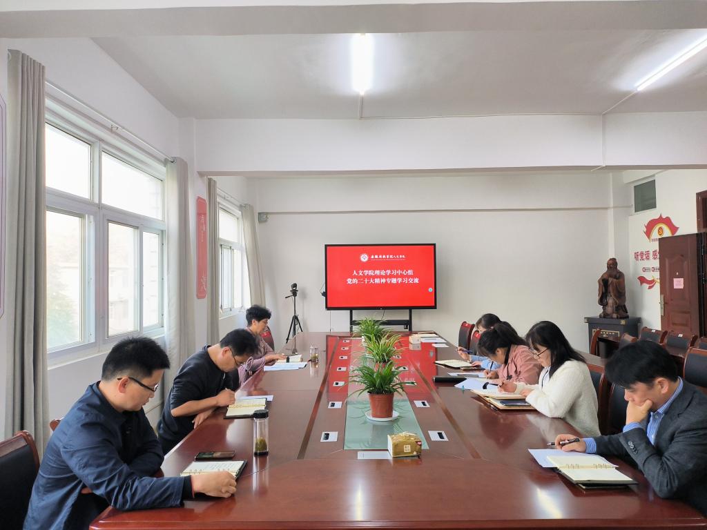 2022年11月14日,人文学院召开党委理论学习中心组集体学习会议,就党的二十大精神展开专题学习研讨。会议围绕“科教兴国”“人才强国”“创新驱动发展”“教育科技人才”以及“五个牢牢把握”等核心内容展开深入学习与探讨。