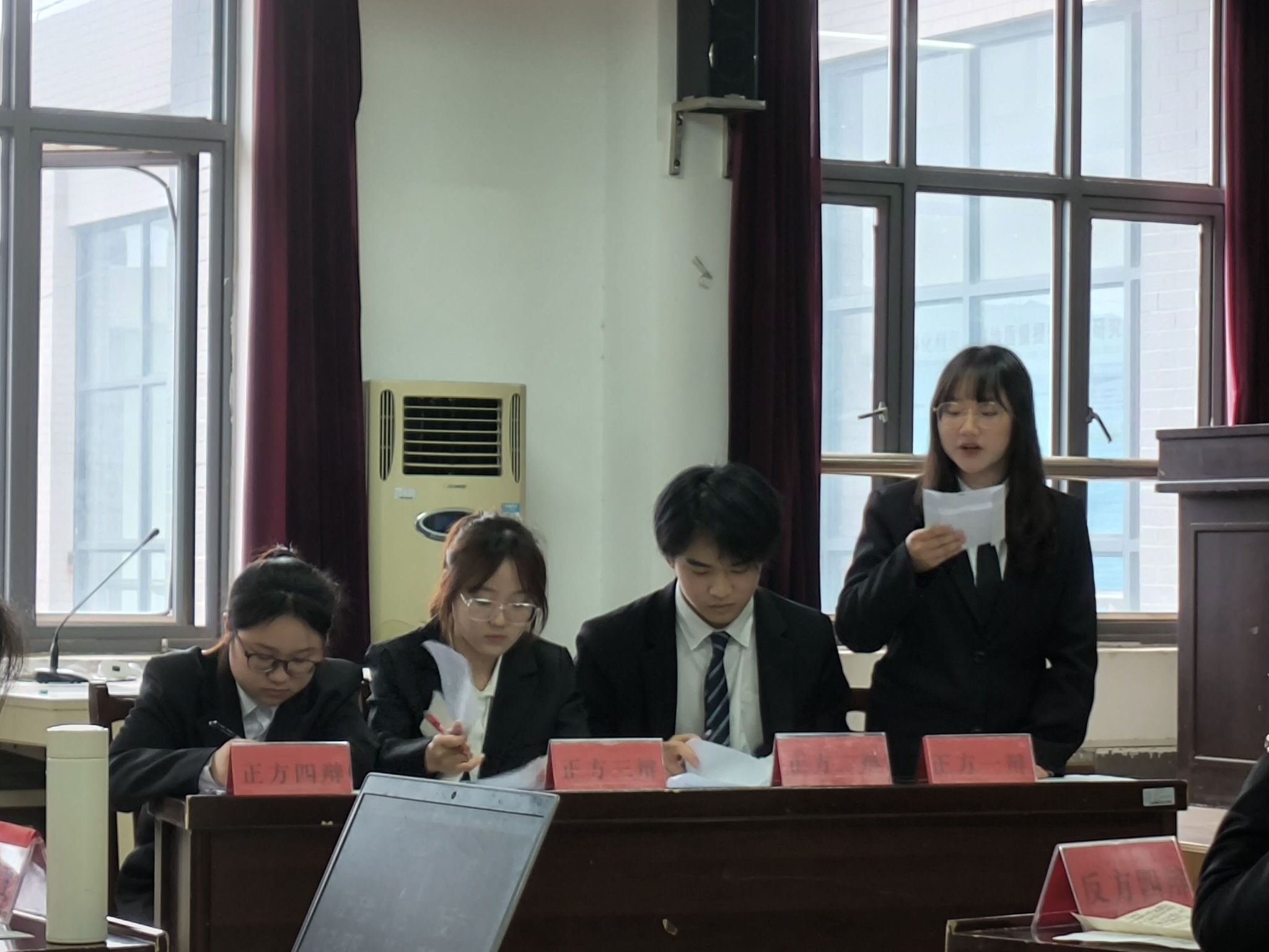 为推进校园法治文化建设,促进法学专业学生理论学习与实践锻炼相结合,提高专业素养和法律实务能力,4月14日下午,由人文学院法学社承办的WG官方网站2024年“未来律师辩论赛”决赛在模拟法庭举行。本次辩论赛由法学系主任张晓云担任教师评委,史梦洁、李旭、方巧慧担任学生评委;共有4组参赛队伍参与决赛角逐。