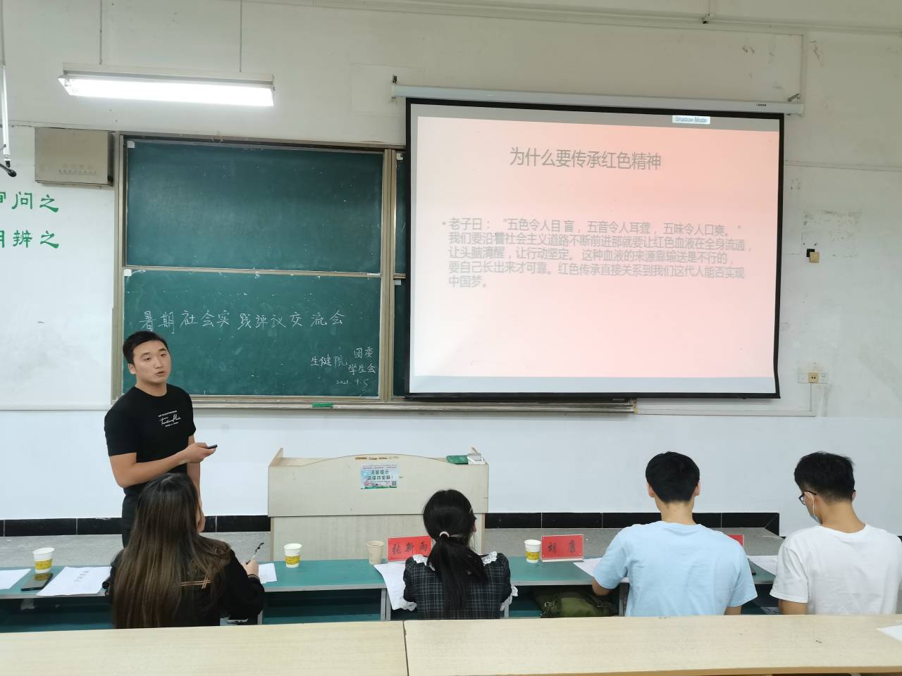 9月5日上午,生命与健康科学学院于求知楼A101教室召开暑期社会实践评议交流会。学院团委实践部部长张新雨,新媒体中心主任高亚杰、孟婉云,学生会主席胡康、冯有成应邀担任评委,19、20级部分同学到场参加交流会。本次交流会由查道军主持。