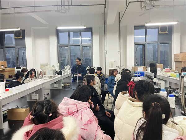 徐荣华于躬行楼8号楼1303实验室指着他小拇指上的伤痕,向同学们提醒到:“实验过程是非常危险的,一定要格外细心和注意。”徐荣华表示进入实验室的那一刻,同学们就要开始认真对待每一分每一秒的实验内容,有什么困难都可以向老师和同学寻求帮助,一定要注意实验室安全。面对徐荣华的关心和提醒,同学们纷纷表示会谨记在心。