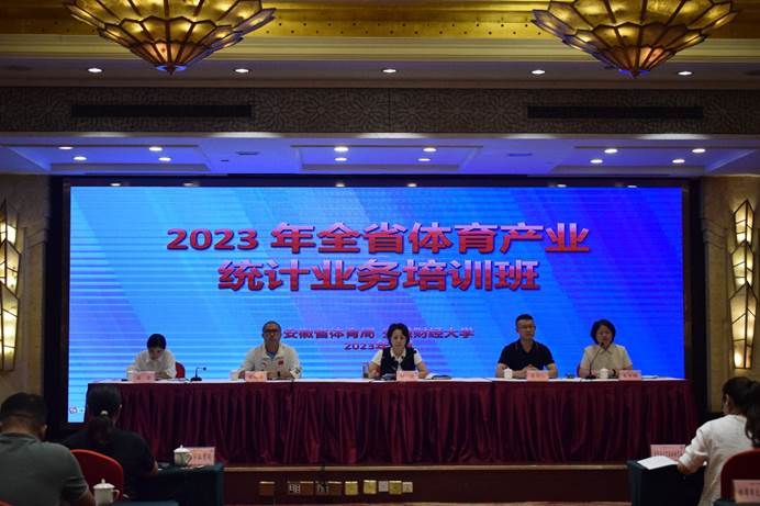 为深入贯彻落实党的二十大精神,进一步提升我省体育产业统计的实际工作能力,奋力推进我省体育产业高质量发展,由安徽省体育局主办、安徽财经大学承办的“2023年全省体育产业统计业务培训班”“2022年度安徽省居民体育消费调查工作”于9月12-13日在蚌埠市水利和顺大酒店顺利举办,省体育局经济处处长刘弢、经济处副处长朱雪梅、经济处二级主任科员盛睿、安徽财经大学体育产业管理研究院院长姜同仁、WG官方网站体育大数据研究中心主任宋述雄出席开班式,安徽省、省内16地市以及部分县(区)体育产业相关干部、深圳市维度数据科技股份有限公司人员共计40余人参加了此次培训