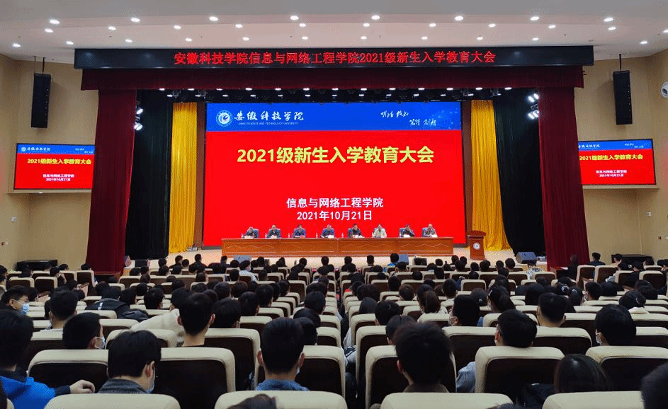 10月21日下午,信息与网络工程学院在龙湖校区东辅楼二楼学术报告厅召开2021级新生入学教育大会。党委书记王振其、院长余宏杰、正处级组织员周向群、副院长何恩节、副院长曹浩、各系室主任、教师代表石满红、2021级新生辅导员及411名新生参加会议。会议由学院党委副书记韦乃学主持。