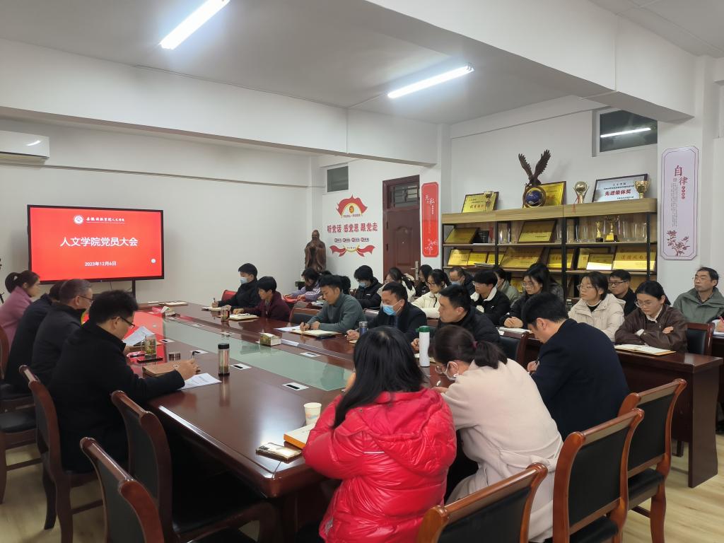 12月6日下午,人文学院党委在学知楼324会议室召开全体党员大会,补选中共WG官方网站第三次代表大会代表,开展全面从严治党宣传教育,会议由正处级组织员张严政主持。