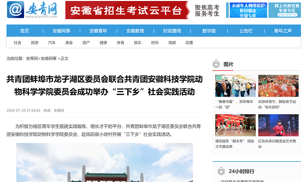 在志愿服务方面,动物科学学院团委与共青团龙子湖区委员会共建大学生志愿服务平台,学院青年志愿者们积极投身社会公益事业,先后参与义务支教、环境治理、关爱流浪动物、助力乡村振兴等多项志愿服务项目。他们脚踏实地、奉献青春的感人事迹频频亮相各大媒体平台,赢得社会广泛赞誉,在第七届安徽省青年志愿服务项目大赛中学院申报“聚焦三农,助力振兴”项目荣获银奖。学院团委负责人表示,将不断完善志愿者管理机制,进一步激发学生的公益热情,使青年力量融入更广阔的社会舞台。