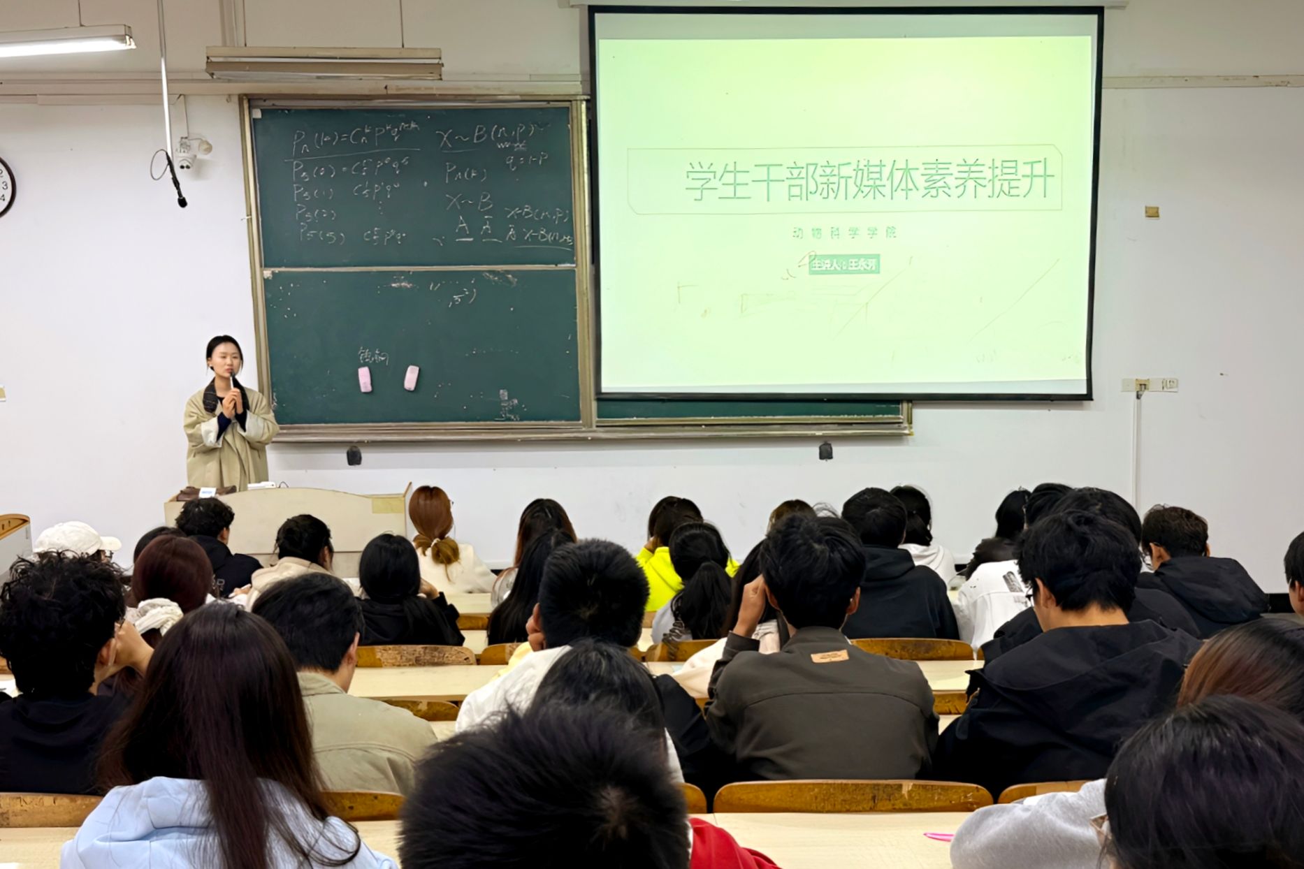 10月23日,动物科学学院在求知楼教室开展学生干部新媒体素养培训会,培训由辅导员王永芳主讲,学院学生会宣传部、团委宣传部和动物养殖与疾病防护协会宣传部全体成员参加培训。