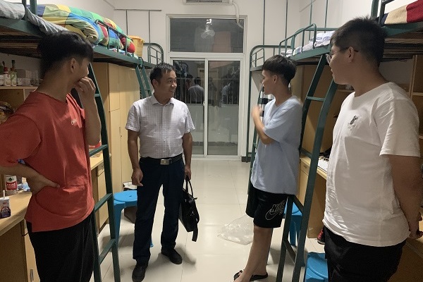 9月16日下午,动物科学学院党总支书记汪洋、院长刘德义、副书记李忠在辅导员李焱、贾方敏、胡文丽的陪同下深入宿舍,看望慰问2020级新生。