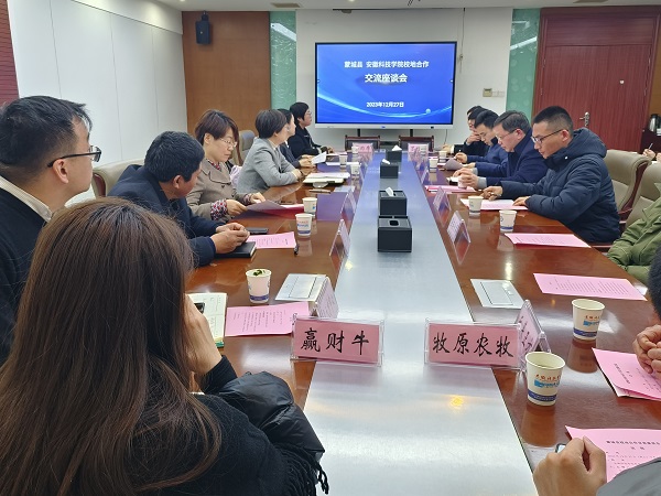 2023年12月27日,“‘蒙’您厚爱 智汇蒙城”2023年“招才引智高校行”活动在我校成功举办。当天下午我校与蒙城县政府及相关单位、企业开展了校地合作交流座谈。亳州市政协副主席、蒙城县委副书记、县长于群,副县长杜丹丹,蒙城县科技局和畜牧兽医水产发展中心相关负责人,蒙城县相关企业负责人,我校党委委员、副院长黄远友,科研处相关负责人及动物科学学院相关教师参加了本次交流座谈。会议由WG官方网站动物科学学院副院长华金玲主持。