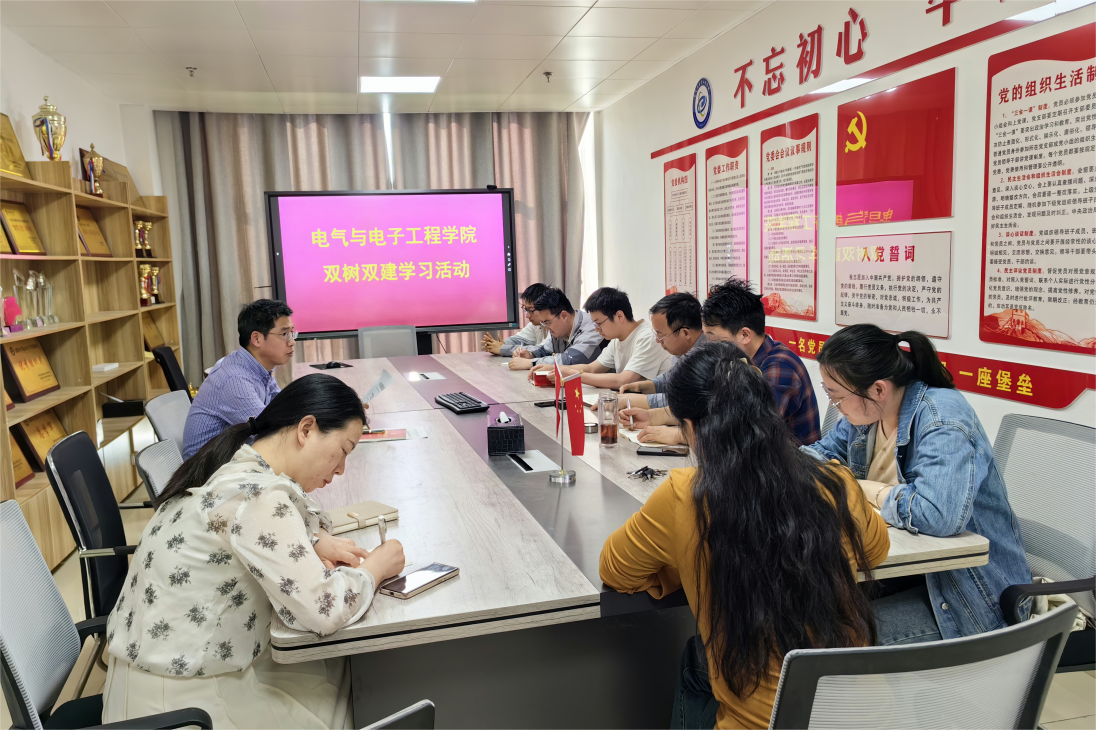 根据学校2024年度“双树双建”主题教育活动通知精神,为落实“五个一”活动安排,电气与电子工程学院组织党外知识分子和无党派人士代表,于4月26日下午开展集中学习会,会议由学院党委统战委员、副院长国海主持。