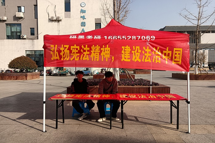 2,签名活动开始。工作人员积极向在场同学讲解宪法的作用和意义引导大家深入了解宪法的重要性和法治精神的核心价值,倡导在日常生活中自觉遵守律法规,树立正确的法律意识。讲解结束,同学们在横幅上留下签名。同学们表示,此次活动让他们更加深刻地认识到宪法的重要性,也激发了他们学习法律知识和法治精神的热情。表示将从自身做起,自觉遵守法律法规,用实际行动践行宪法精神争做新时代知法、懂法、守法的优秀青年学子。