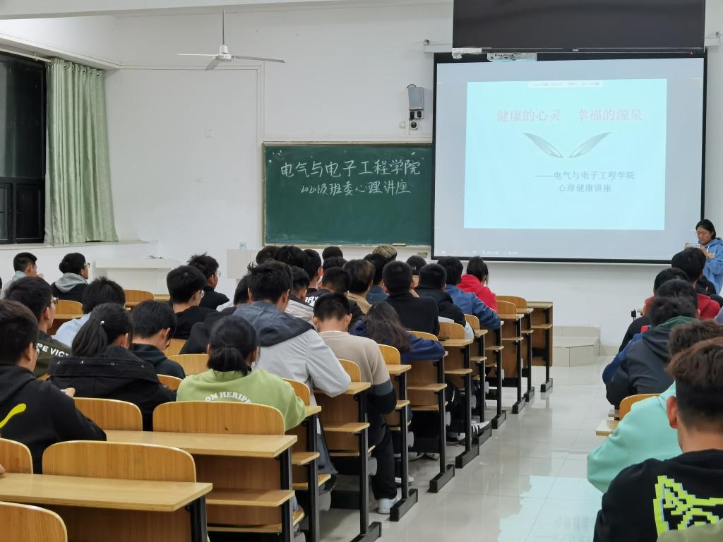 为更好地帮助2020级新生适应大学生活,培养他们积极健康的心理状态,增强班级委员心理危机的识别与处理能力,11月18日晚,电气与电子工程学院于致知楼C108举办2020级班委心理健康讲座活动,此次活动由学院心理负责老师宋志华主讲,学院2020级全体班委参加此次讲座。