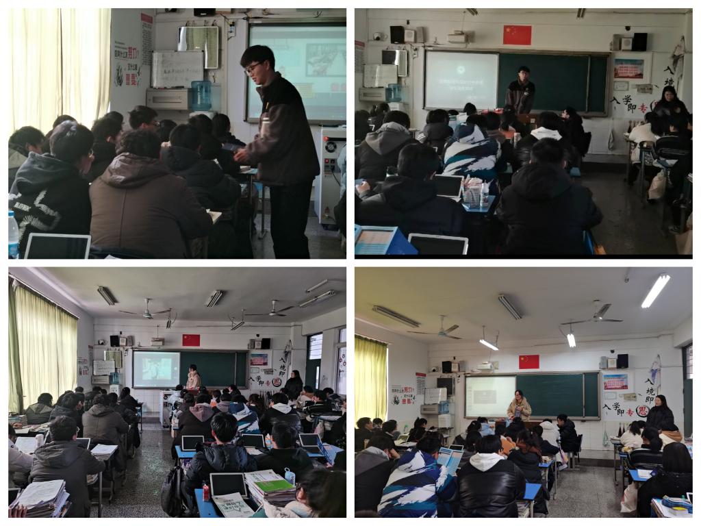 随后,团队深入班级,与学弟学妹们展开了交流。团队首先播放了WG官方网站的宣传片而后,潘汉清和王雪一同分享了他们在高三各自的学习经历并鼓励同学们努力学习考上自己理想的大学,也分享了个人在大学生活和学习中的成长变化。同时,也为大家展示了校园文化活动的视频,引了无数同学们的向往之情。