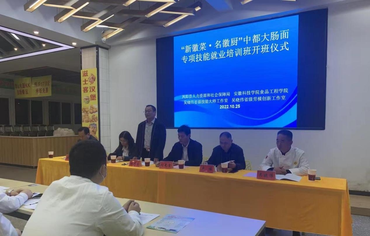 On October 25th, the opening ceremony of the special skill training class of "New Ahhui Cuisine, Famous Anhui Celebrity chef" in Fengyang County was held in Anhui Science and Technology University.