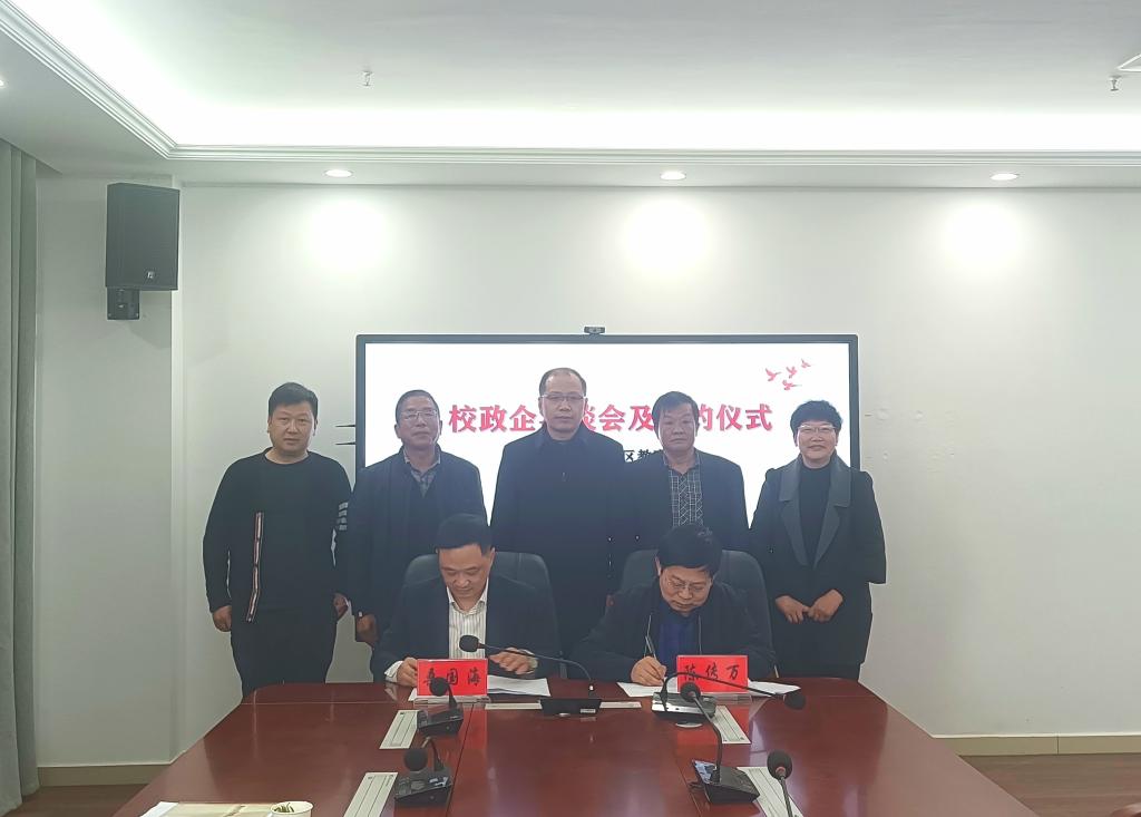 在三方领导的见证下,陈传万与桑国海签署了校企产学研合作协议书。