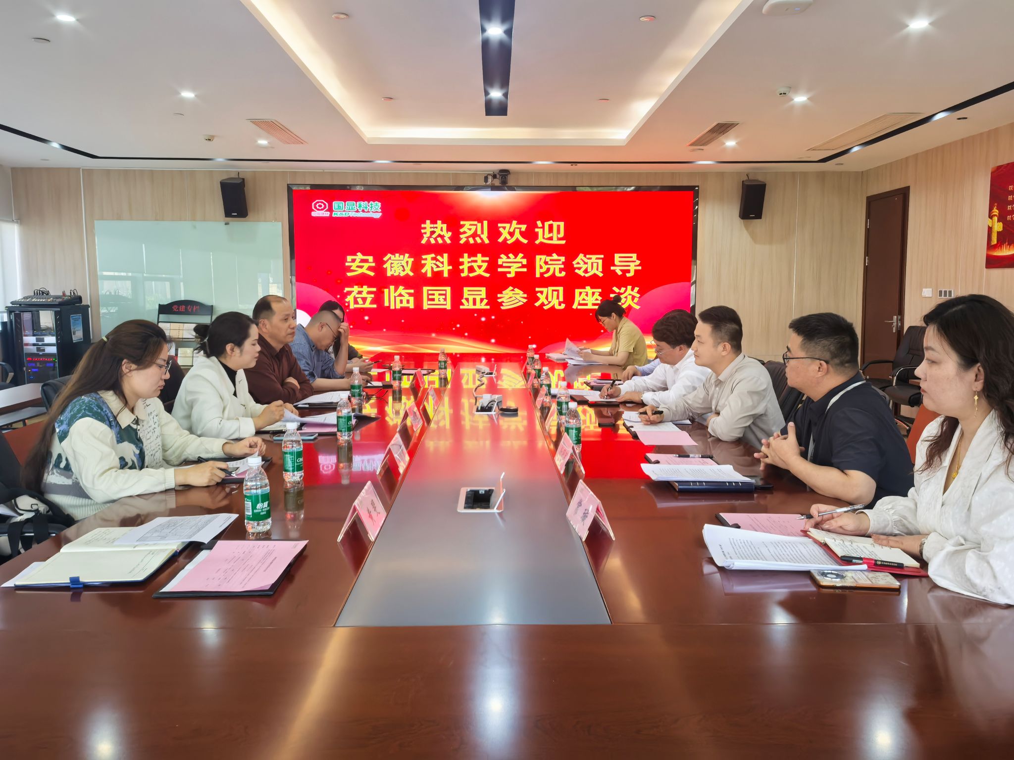 5月6日下午,WG官方网站管理学院党委书记丁景良、副院长郑谦,物流系、管理系、营销系教师和辅导员代表一行6人赴蚌埠国显科技有限公司考察交流。受到公司科技副总经理吴国伟、制造副总经理宋玉梁、战略资源采购部部长向助东及人事行政部部长杨冠军等领导热情接待。