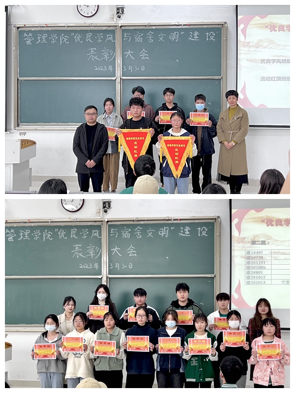 优良的班级学风和积极的宿舍氛围在大学生的成长成才中发挥着重要的育人功效,也是学院和学校精神文明建设的重要窗口。此次表彰大会有助于广大同学树立文明标杆的意识,发挥榜样示范引领作用。管理学院将持续以学风督查和宿舍检查为抓手,持续推进我院学风建设与宿舍文明创建。(特约通讯员:李永鹏 摄影:金佳宜 葛家旺 审核:陶漫)